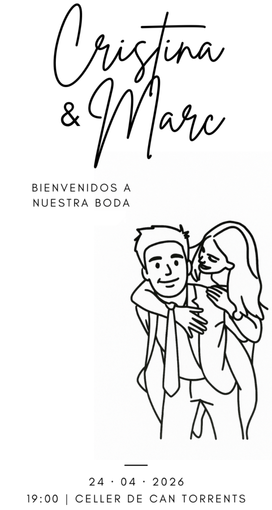 La boda será de noche, con un código de vestimenta elegante. Trajes y vestidos de noche serán perfectos.